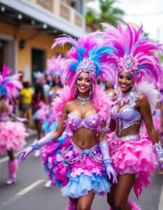 Le Carnaval de Martinique, du 2 au 5 mars 2025, est une explosion de culture et de festivités. Les Diables Rouges, figures imposantes aux costumes rouges éclatants, masques effrayants, cornes, et miroirs, fascinent et impressionnent. Leurs défilés, rythmés par des tambours et percussions, entraînent la foule dans des « vidés » bouillonnants. C’est un événement éblouissant où l’île se transforme, dévoilant son esprit festif et sa richesse culturelle, un incontournable de la Caraïbe. Préparez-vous à vivre une tradition vibrante !